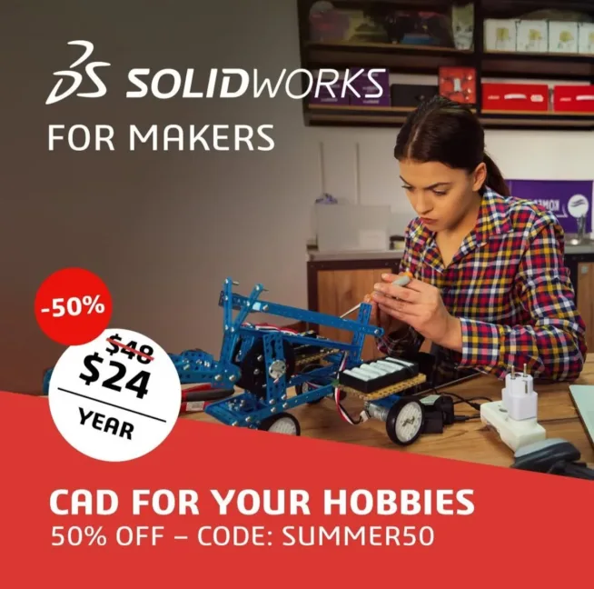 By following this website, you can save 50% on the purchase of professional CAD SOLIDWORKS. With this coupon, you can get the CAD for just $24 for the whole year instead of the original $48.